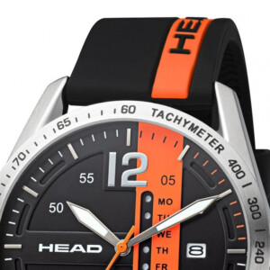 Zegarek męski Head model H800201 charakteryzuje się zaawansowaną technologią i solidnym wykonaniem, co sprawia, że jest warty zakupu. Mechanizm kwarcowy, zasilany baterią, jest synonimem niezawodności i precyzyjnego mierzenia czasu. Stal szlachetna użyta do wykonania koperty zapewnia wysoką odporność na korozję i zarysowania. Unikalna kombinacja kolorów: czarnego, pomarańczowego i srebrnego, nadaje modelowi nowoczesnego charakteru, który doskonale wpisuje się w sportowy styl życia. Gumowy pasek jest wytrzymały i komfortowy, idealny na każdą okoliczność, a dodatkowo łatwy w czyszczeniu i utrzymaniu. Szczególnie przyciągająca jest funkcjonalność, jaką oferuje tachymetr i datownik, umożliwiające pomiar prędkości oraz szybki dostęp do daty. Kupując ten model u autoryzowanego sprzedawcy marki Head, masz pewność otrzymania oryginalnego produktu, co jest potwierdzone dwuletnią gwarancją.