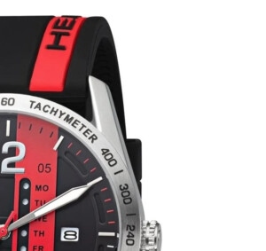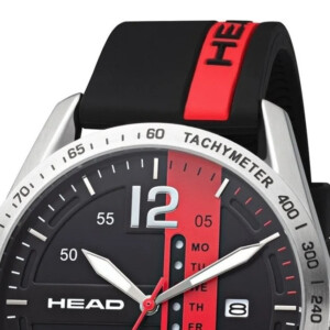 Zegarek męski marki Head, model H800203, to synonim sportowej elegancji połączonej z wytrzymałością. Okrągła koperta o średnicy 43 mm, wykonana z wysokiej jakości stali szlachetnej, jest dopełniona barwnym akcentem na tarczy, łączącym czernie, czerwienie i srebra. Ten model, zasilany niezawodnym mechanizmem kwarcowym, został wyposażony w trwały, gumowy pasek, co gwarantuje komfort oraz trwałość nawet podczas intensywnej aktywności fizycznej. Szkło mineralne oraz wodoszczelność do 100 metrów czynią ten zegarek idealnym towarzyszem w sportowych wyzwaniach, jak również podczas codziennych aktywności. Wartością dodaną są fluorescencyjne wskazówki oraz tachymetr, które podkreślają jego funkcjonalny, sportowy charakter, zdobywając uznanie miłośników dynamicznego stylu życia.