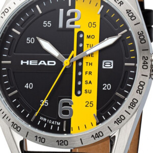 Sportowy zegarek męski Head model H800210 to doskonały wybór dla mężczyzn ceniących dynamiczny styl i niezawodność. Charakterystyczna okrągła koperta o średnicy 43mm, wykonana z trwałej stali szlachetnej, oraz stylowe połączenie kolorów czarnego, srebrnego i żółtego nadają temu modelowi wyrazisty charakter. Wodoodporność do 100 metrów sprawia, że zegarek świetnie sprawdzi się podczas różnych aktywności wodnych, w tym nurkowania bez aqualungu. Ciemna tarcza komplementowana jest przez fluorescencyjne wskazówki oraz indeksy, które gwarantują czytelność w każdych warunkach. Pasek skórzany dodaje elementu elegancji, zachowując przy tym sportowy charakter. Marka Head zyskuje uznanie dzięki połączeniu niezawodności z nowoczesnym designem, idealnie pasującym do energicznego stylu życia.