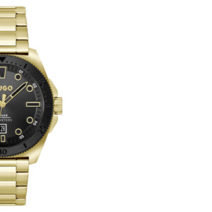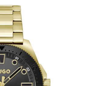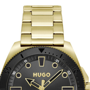 Elegancki męski zegarek marki Hugo, model 1530304, łączy w sobie prestiż i nowoczesność, które są synonimami marki. Wyposażony w okrągłą kopertę o średnicy 44 mm, wykonaną z nierdzewnej stali, zegarek zachwyca swoim mrocznym cyferblatem i stylową bransoletą. Całość dopełnia stylowy kontrast żółtego złota i głębokiej czerni, nadany przez zaawansowaną technikę pokrycia PVD/IP. Mineralne szkło gwarantuje odporność na zarysowania, a wodoodporność do 50 metrów umożliwia pływanie powierzchniowe bez obaw o uszkodzenie mechanizmu. Design tego modelu Hugo definiuje męski styl Fashion, czyniąc go idealnym wyborem dla nowoczesnego mężczyzny, który ceni sobie wyrafinowanie i jakość marki.