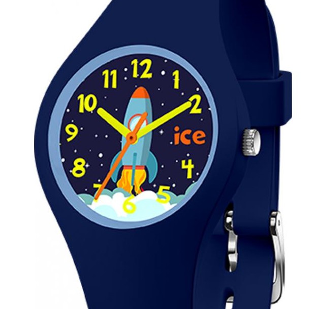 Zegarek Ice Watch Ice Fantasia o numerze 018426 jest idealnym zegarkiem dla chłopca, który właśnie nauczył się odczytywać godzinę z tarczy analogowej. Zegarek został utrzymany w dziecięcej stylistyce. Przedstawiany model wyróżnia się ciekawym wzornictwem okrągłej tarczy i estetycznym dopasowaniem kolorów. Grafika na tarczy pokazuje kolorową rakietę wystrzeloną w przestrzeń kosmiczną, co z pewnością spodoba się każdemu dziecku. Idealnym uzupełnieniem ciemnej tarczy jest miękki gumowy pasek w kolorze granatowym, który nie podrażnia delikatnej skóry dziecka i nie powoduje żadnych otarć.