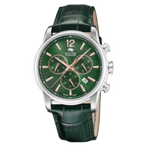 Zegarek męski marki Jaguar, model J968/3, to synonim sportowej elegancji, która idealnie komponuje się zarówno z codziennym, jak i bardziej formalnym strojem. Wykonany z wysokiej jakości stali szlachetnej, który gwarantuje wytrzymałość i trwałość, jest kluczowym elementem dla osób ceniących zarówno funkcjonalność, jak i estetykę. Czarna, skórzana bransoleta dodaje klasy, podkreślając elegancki charakter zegarka, natomiast zielone akcenty na srebrnej tarczy przyciągają oko, dodając urządzeniu wyjątkowego charakteru. Szafirowe szkło, odporne na zarysowania, oraz wodomoodporność do 50 m czynią ten model nie tylko pięknym, ale i praktycznym wyborem.
