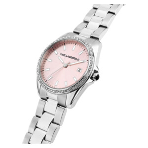 Zegarek damski Karl Lagerfeld o numerze modelu R0553101512 to kwintesencja stylu i elegancji, który jest synonimem samego projektanta. Srebrno-stalowa obudowa i bransoleta wykonane z najwyższej jakości stali szlachetnej są nie tylko trwałe, ale też wyrafinowane dzięki starannemu wykończeniu PVD/IP, które dodaje klasy. Jasna, różowa tarcza z liniowymi indeksami stanowi subtelny kontrast, tworząc nie tylko funkcjonalny, ale i atrakcyjny element designu. Lagerfeld, znany ze swojego niepowtarzalnego, modowego zmysłu, zastosował w tym modelu prosty, ale wyrafinowany kształt koperty, który sprawdza się w codziennym użytkowaniu. Ten zegarek nie tylko mówi o czasie, ale także o wyrafinowanym guście jego właścicielki.