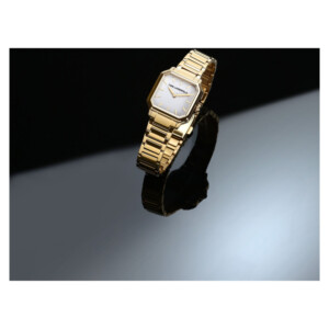 Damski zegarek Karl Lagerfeld model R0553102505 zdecydowanie wyróżnia się na tle innych, odzwierciedlając unikatowy styl marki, który wyczuwalny jest w każdym detalu. Jego kwadratowa, stalowa koperta pokryta techniką PVD/IP w intensywnym żółtym kolorze, w połączeniu z jasną, białą tarczą i linearnymi indeksami, tworzy modny i wyrafinowany wygląd, który przyciąga spojrzenia. Bransoleta również utrzymana w ożywczym żółtym kolorze, harmonijnie komponuje się z wyniosłą i elegancką estetyką całego zegarka. Litharl Lagerfeld jest synonimem luksusu oraz modowego forward-thinking, co doskonale wyraża się w tym szczególnym modelu, który mówi więcej niż zwykły czasomierz, stając się wyrazem osobistej stylizacji i prestiżu.
