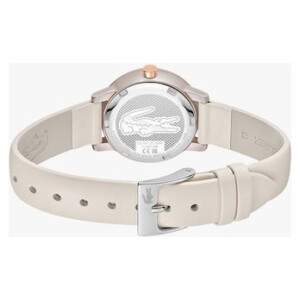 Model zegarka Lacoste 2001437 to kwintesencja elegancji i klasycznego stylu, który charakteryzuje tę renomowaną markę. Jego kremowa tarcza doskonale komponuje się z równie delikatnym kolorem paska, tworząc spójną i estetyczną całość. Czarna koperta zegarka o średnicy 28mm oraz grubości 8mm dodaje kontrastu i podkreśla wyrafinowany charakter akcesorium. Skórzany pasek zapewnia komfort noszenia, a minimalistyczny, okrągły kształt koperty wpisuje się w najnowsze trendy w modzie. Zegarek jest idealnym dodatkiem dla tych, którzy cenią sobie ponadczasową elegancję i jakość, które są synonimami marki Lacoste.