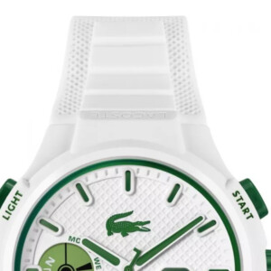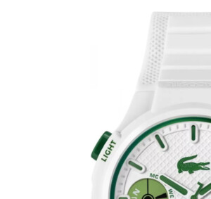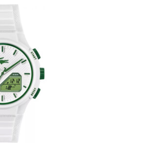 Model zegarka Lacoste o numerze 2011364 to kwintesencja elegancji i nowoczesnej mody. Oparty na klasycznych barwach, ten zegarek wyróżnia się białą tarczą oraz białym paskiem ze skóry, które idealnie komplementują każdy strój, podkreślając modny "Fashion style" marki. Okrągła koperta o średnicy 44 mm i grubości 15 mm stanowi wyraźny, ale subtelny element designu, który przyciąga uwagę bez przesady. Szkło mineralne dodatkowo zabezpiecza tarczę przed zarysowaniami, co w połączeniu z wodoodpornością do 100 m czyni go zarówno stylowym, jak i praktycznym wyborem dla współczesnych miłośników zegarków.