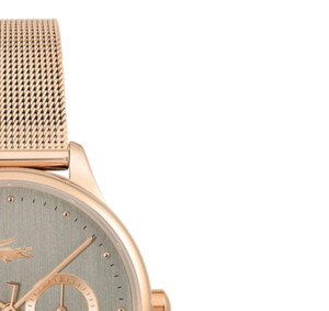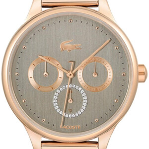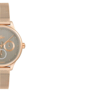 Elegancki i pełen klasy zegarek damski Lacoste, model 2001205, prezentuje doskonałość, której symbolem jest renomowana marka Lacoste. Obudowa z pozłacanej stali szlachetnej w odcieniu żółtego złota, zdobiona kryształami, nadaje urządzeniu luksusowy charakter. Okrągła, 34 mm koperta z przejrzystym, mineralnym szkłem chroniącym ciemną tarczę z funkcją datownika, zapewnia nie tylko stylowy wygląd, ale też użytkową funkcjonalność. Bransoleta w tym samym kolorze co koperta pomyślnie komponuje się z modnym stylem Fashion, tworząc idealny dodatek dla każdej nowoczesnej kobiety ceniącej ponadczasową elegancję i markę o ugruntowanej pozycji na rynku światowym.
