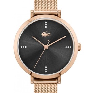 Model zegarka damskiego Lacoste 2001165 to kwintesencja elegancji i nowoczesności, która idealnie koresponduje z powszechnie cenioną jakością i stylem marki Lacoste. Zegarek ten charakteryzuje się okrągłą kopertą o średnicy 32 mm, wykonaną z wysokiej jakości stali szlachetnej i pokrytą metodą PVD/IP na kolor różowego złota, co dodaje mu luksusowego charakteru. Tarcza w ciemnym odcieniu kontrastuje z błyszczącymi kryształami, tworząc wyrafinowany i modny akcent. Bransoleta w czarnym kolorze z dodatkiem różowego złota podkreśla modny aspekt tego zegarka, klasyfikując go jako wyraźnego reprezentanta stylu Fashion. Szkło mineralne oraz wodoodporność do 50 metrów umożliwiają codzienne noszenie z pełnym komfortem.