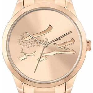 Zegarek damski Lacoste o numerze modelu 2001231 eksploruje elegancję i nowoczesną klasę, typową dla marki o tak prestiżowym rodowodzie. Wyróżniając się swoim subtelnym, ale modnym designem „Fashion”, okrągła, pozłacana w różowego złota koperta dodaje odrobinę luksusu do codziennego ubioru. Jasna tarcza zegarka harmonijnie kontrastuje z tłem różowego złota, co dodatkowo podkreśla jego stylowy charakter. Stal szlachetna użyta do wykonania koperty i bransolety gwarantuje trwałość, podczas gdy mineralne szkło chroni zegarek przed zarysowaniami. Dzięki swojemu wyrafinowanemu wyglądowi i kolorystyce, ten model Lacoste doskonale odzwierciedla zamiłowanie do elegancji i jakości, które są synonimem marki.