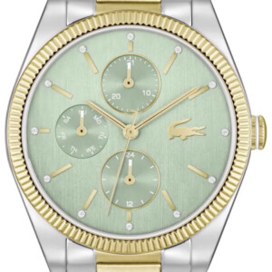 Damski zegarek Lacoste model 2001364 to kwintesencja elegancji połączona z markowym stylem. Projektanci wybrali srebrno-żółto złote odcienie, które nadają uniwersalny, ale wyrafinowany charakter dodatku. Okrągła koperta o średnicy 36 mm wykonana ze stali szlachetnej gwarantuje trwałość, a zastosowanie mineralnego szkła chroni przed zarysowaniami. Jasna tarcza doskonale komponuje się z bransoletą, czyniąc zegarek idealnym dla aktywnych kobiet, ceniących sobie modny "Fashion" look. Wodoodporność do 50m umożliwia użytkowanie podczas pływania powierzchniowego, co sprawia, że zegarek jest praktyczny i stylowy zarazem.