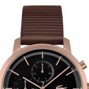 Nowoczesny, elegancki zegarek męski Lacoste o modelu 2011257 zachwyca połączeniem ciemnych barw i najwyższej jakości materiałów. Okrągła koperta o średnicy 44 mm, wykonana ze stali szlachetnej z nanoszeniem koloru metodą PVD/IP, świetnie komponuje się z brązowym skórzanym paskiem, tworząc niezwykle stylowy dodatek. Ciemna tarcza zestawiona ze szkłem mineralnym podkreśla modny, miejski charakter zegarka, a także gwarantuje trwałość i odporność na zarysowania. Zegarek ten, będący synonimem "Fashion" w stylu Lacoste, idealnie odzwierciedla prestiż i sportową elegancję marki, znanej z wysokiej jakości produktów.
