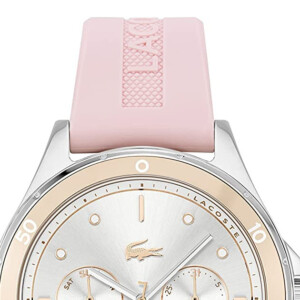 Zegarek damski Lacoste o numerze modelu 2001245 to kwintesencja elegancji i nowoczesnego stylu Fashion, który swoje rootsy czerpie z renomowanej marki Lacoste. Okrągła koperta o średnicy 40mm, wykonana ze stali szlachetnej i pozłacana w odcieniach różowego złota za pomocą technologii PVD/IP, dodaje luksusowego charakteru. Jasna tarcza zdobiona cyrkoniami harmonijnie współgra z różowozłotym kolorystycznym schematem. Pasek gumowy w tonacji różu zwiększa komfort noszenia, zaś szczegóły jak fluorescencyjne wskazówki lub datownik łączą funkcjonalność z modnym designem. Dopełnieniem całej kompozycji jest wytrzymałe szkło mineralne. Zegarek ten nie tylko podkreśla styl i klasę, ale również świadczy o precyzji wykonania charakterystycznej dla marki Lacoste.