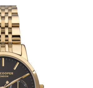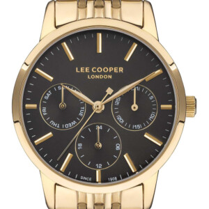 Zegarek damski Lee Cooper model LC07358.160 łączy w sobie elegancję i nowoczesność, będąc wyrazem charakterystycznego dla marki stylu Fashion. Okrągła koperta o średnicy 32mm, wykonana z mosiądzu i stali szlachetnej, pokryta jest zachwycającym połyskiem żółtego złota dzięki technologii PVD/IP. Ciemna tarcza zdobiona cyrkoniami doskonale kontrastuje z pozłacaną bransoletą, tworząc wyrafinowany, ale i praktyczny dodatek do każdej stylizacji. Użycie szkła mineralnego dodaje wytrzymałości, a subtelne kolorystyczne akcenty w czerni i złocie podkreślają prestiż marki Lee Cooper, będącej symbolem brytyjskiego stylu.