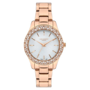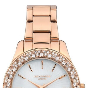 Zegarek damski Lee Cooper, model LC07390.420, emanuje subtelną elegancją zaakcentowaną kulturą mody typu "Fashion". Jego okrągła koperta o średnicy 35mm, wykonana ze stali szlachetnej i mosiądzu, jest pozłacana w delikatnym odcieniu różowego złota przy użyciu technologii PVD/IP, co podnosi jego trwałość i estetykę. Biała tarcza, zdobiona masą perłową i odznaczająca się subtelnie umieszczonymi cyrkoniami, nadaje temu czasomierzowi wyjątkowej klasy. Uzupełnieniem całości jest bransoleta, która elegancko komponuje się z barwą koperty. Zegarek ten nie tylko świadczy o wysokim smaku, lecz także o wartościach, jakie Lee Cooper wpisuje w swoje wyroby - ponadczasowym stylu i wysokiej jakości wykonania.