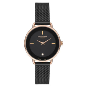 Model LC07400.450 damskiego zegarka Lee Cooper to kwintesencja elegancji połączona z nowoczesną funkcjonalnością. Owalna koperta o średnicy 34mm, wykończona za pomocą technologii PVD/IP w kolorze różowego złota, z subtelnie zdobioną tarczą ciemną, emanuje luksusem. Zastosowanie stalowej bransolety w kolorze czarnym z dodatkami różowego złota oraz zdobienia z cyrkonii nadają zegarkowi wyrafinowany, modny wygląd, który wpisuje się w styl Fashion marki. Szkło mineralne zapewnia trwałość i odporność na zarysowania, co potwierdza zaangażowanie Lee Cooper w jakość swoich produktów.