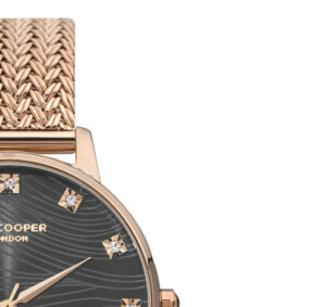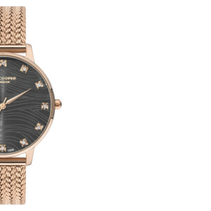 Model LC07401.450 to elegancki damski zegarek marki Lee Cooper, który łączy w sobie sofistykcję z nowoczesnością, co idealnie pasuje do kobiet ceniących modny, ale praktyczny styl. Okrągła koperta o średnicy 36mm wykonana z połączenia mosiądzu i stali szlachetnej, pozłacana w kolorze różowego złota, podkreśla luksusowy charakter zegarka. Bransoleta w kolorze czarnym z elementami różowego złota oraz zdobienia z cyrkonii dodają blasku i elegancji. Model ten, dzięki swojej ciemnej tarczy i minimalistycznemu designowi, doskonale komponuje się z każdym outfitem, będąc zarazem praktycznym dodatkiem na co dzień, jak i wyrafinowanym akcentem na specjalne okazje. Wartość marki Lee Cooper tętni w każdym detalu tego modelu, sprawiając, że noszenie tego zegarka staje się prawdziwą przyjemnością.