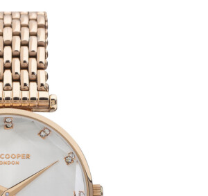 Zegarek damski Lee Cooper model LC07410.430 to kwintesencja kobiecej elegancji połączona z nowoczesnym designem. Zdobiony cyrkoniami oraz wykonany z masą perłową w połączeniu z różowym złotem nadaje wyrafinowany i subtelny charakter. Obudowa z mosiądzu i stali szlachetnej, pokryta technologią PVD/IP, zapewnia trwałość i blask, podkreślając fantastyczny, modny styl. Okrągła koperta o średnicy 33 mm jest idealnie wyważona dla kobiecego nadgarstka, a mineralne szkło skutecznie chroni jasną tarczę zegarka przed zarysowaniami. Bransoleta w kolorze białym z różowym złotem elegancko dopełnia całość, sprawiając, że zegarek jest nie tylko precyzyjnym czasomierzem, ale także wyjątkowym dodatkiem do każdej stylizacji.