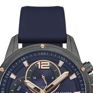 Zegarek męski Lee Cooper, model LC07423.099, to kwintesencja stylu Fashion, który doskonale oddaje ducha renomowanej marki. Charakteryzuje się on okrągłą kopertą o średnicy 45mm, wykonaną z połączenia mosiądzu i stali szlachetnej, co podkreśla jego elegancję oraz wytrzymałość. Ciemna tarcza z fluoresecencyjnymi wskazówkami i indeksami zapewnia doskonałą czytelność, a dodatkowe funkcje jak datownik czy chronograf znacznie zwiększają jego funkcjonalność. Czarny gumowy pasek jest nie tylko komfortowy, ale także dodaje zegarkowi sportowego charakteru, co w połączeniu z wodoodpornością do 50m czyni go idealnym wyborem dla aktywnych mężczyzn. Zastosowanie nanoszenia koloru metodą PVD/IP gwarantuje trwałość i odporność na ścieranie, co jeszcze bardziej wzmaga atrakcyjność tego modelu.