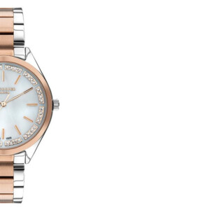 Zegarek damski Lee Cooper model LC07497.520 to kwintesencja elegancji i nowoczesności. Opływowa, okrągła koperta o średnicy 35mm, wykonana z połączenia mosiądzu i stali szlachetnej, pokryta jest warstwą PVD/IP w modnym odcieniu różowego złota, co dodaje zegarkowi luksusowego charakteru. Tańczące na słońcu cyrkonie oraz ekran z masy perłowej nadają tarczy subtelnego blasku, harmonijnie komplementując biało-srebrną bransoletę. Styl Fashion, podkreślony przez te wyrafinowane detale, świetnie sprawdzi się zarówno podczas ważnych uroczystości, jak i w codziennym użytkowaniu. Zegarek Lee Cooper LC07497.520 to nie tylko czasomierz, ale przede wszystkim modny dodatek, który podkreśli każdą stylizację.