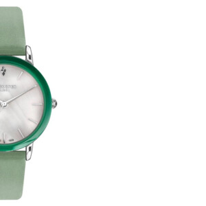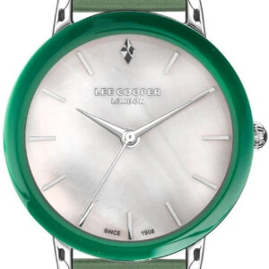 Zegarek damski Lee Cooper model LC07521.327 to kwintesencja stylu Fashion, idealnie łączący klasę z nowoczesnością. Okrągła, elegancko wykonana koperta o średnicy 34mm, wykonana z mosiądzu i stali szlachetnej, ozdobiona jest metodą nanoszenia koloru PVD/IP, co dodaje jej wyrafinowanego wyglądu. Dzięki zastosowaniu jasnej tarczy z masą perłową, zegarek nabiera subtelnego blasku, który pięknie komponuje się z białym, skórzanym paskiem oraz dodatkami w kolorze srebrnym i zielonym. Szkło mineralne dodatkowo chroni przed zarysowaniami, podkreślając trwałość i wysoką jakość, które są znakiem rozpoznawczym marki Lee Cooper.