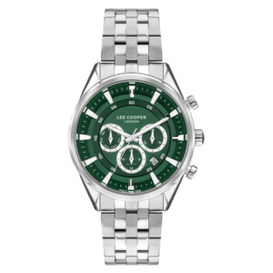 Zegarek męski Lee Cooper, model LC07533.370, wyróżnia się swoim eleganckim i nowoczesnym stylem Fashion, pozostając przy tym wiernym renomowanej jakości marki. Smukła, okrągła koperta o średnicy 45mm wykonana z mosiądzu i stali szlachetnej, w połączeniu z wytrzymałym szkłem mineralnym i wodoodpornością do 50m, gwarantuje nie tylko styl, ale i trwałość. Zegarek łączy w sobie srebrny kolor z akcentami zieleni na tarczy, co dodaje mu wyjątkowego charakteru. Chronograf, datownik oraz fluoressencyjne wskazówki to funkcje, które uatrakcyjniają codzienne użytkowanie, podkreślając modowy zmysł marki Lee Cooper.