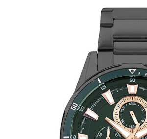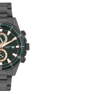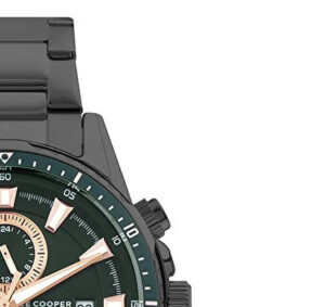Zegarek męski Lee Cooper model LC07627.070 to doskonałe połączenie stylu modowego z funkcjonalnością, odzwierciedlające renomę marki Lee Cooper oraz jej zamiłowanie do nowoczesnych trendów. Ciemna tarcza z wyraźnymi fluoescencyjnymi wskazówkami i indeksami, osadzona w solidnej, okrągłej kopercie o średnicy 46mm, wykonanej ze stali szlachetnej z naniesieniem koloru PVD/IP, gwarantuje wytrzymałość i elegancję. Nadająca się do pływania powierzchniowego wodoodporność do 50m oraz bransoleta w kolorach czarnym i zielonym dodają zegarkowi charakteru, czyniąc go idealnym wyborem dla mężczyzn ceniących sobie zarówno modę, jak i funkcjonalność.