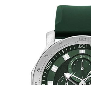 Zegarek męski Lee Cooper model LC07631.377 prezentuje stałą elegancję marki, która jest znana z połączenia modnego stylu z funkcjonalnością. Stylistyka "Fashion" oparta jest na dużym, okrągłym korpusie o średnicy 49 mm, wykonanym ze stali szlachetnej, co gwarantuje trwałość i wytrzymałość. Srebrna koperta w połączeniu z ciemną tarczą i zielonym, gumowym paskiem tworzy atrakcyjny kontrast, idealnie pasujący do nowoczesnego mężczyzny. Fluorescencyjne wskazówki i indeksy poprawiają czytelność nawet w słabo oświetlonych warunkach, co podkreśla użyteczność tego modelu.