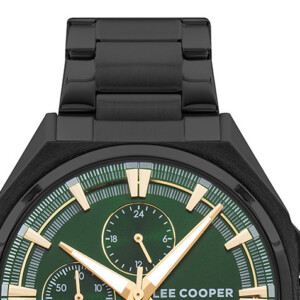 Zegarek męski Lee Cooper model LC07716.670 łączy w sobie wyrafinowany styl fashion z niezawodnością wykonania. Jego okrągła koperta o średnicy 44 mm wykonana jest z wytrzymałej stali szlachetnej znaną również z eleganckiego nanoszenia koloru PVD/IP, co potęguje wrażenie luksusu. Spektakularne zestawienie ciemnej tarczy z zielonymi i czarnymi elementami nadaje zegarkowi unikalnego, modowego wyglądu, który doskonale odzwierciedla wartość marki Lee Cooper. Dopełnieniem całości jest bransoletka, która zapewnia komfort noszenia przy każdej okazji, a szkło mineralne chroni zegarek przed zarysowaniami.