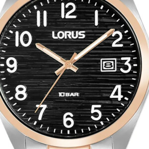 Lorus RH914RX9 to kwintesencja elegancji i nowoczesności, ukazana w każdym detalu tego zegarka. Charakteryzuje się on czarną tarczą, która doskonale współgra z dwukolorową bransoletą, dodającą urządzeniu wszechstronności i szyku. Okrągła, precyzyjnie wycinana koperta o średnicy 39mm jest wykonana ze stali szlachetnej, co zapewnia trwałość oraz ponadczasowy wygląd. Zegarek wyróżnia się również cyfrowymi indeksami arabskimi i datownikiem, podkreślając jego funkcjonalność. Szkło mineralne oraz odporność wodna do 100m czynią z tego modelu Lorus nie tylko wyrafinowany wybór, ale również praktyczny dodatek pasujący do każdego stroju.