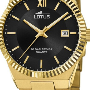 Zegarek męski Lotus model L18837/3 reprezentuje elegancję oraz współczesny styl Fashion, będąc odzwierciedleniem prestiżu i innowacji marki Lotus. Wykonany ze stali szlachetnej z pozłacanymi elementami w technologii PVD/IP w kolorze żółtego złota, model wyróżnia się niepowtarzalny tonem wykończenia. Czarna, okrągła koperta o średnicy 40mm harmonijnie współgra z ciemną tarczą, a mineralne szkło gwarantuje wytrzymałość. Wodoodporność do 100m oraz funkcje takie jak datownik i fluorescencyjne wskazówki/indeksy podnoszą jego użyteczność. Bransoleta nabiera dodatkowego charakteru dzięki przemyślanemu połączeniu czerni i złota, co czyni zegarek idealnym wyborem dla mężczyzn ceniących ponadczasową klasykę z nowoczesnym akcentem.