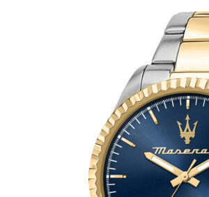 Zegarek męski Maserati o numerze modelu R8853100027 to kwintesencja stylu i precyzji, charakterystyczna dla włoskiej marki o bogatej historii w projektowaniu luksusowych samochodów. Wyrafinowany i modny, ten zegarek łączy w sobie elegancję i nowoczesność. Jego okrągła, 42-milimetrowa koperta oraz bransoleta wykonane są ze stali szlachetnej, dodatkowo zdobione techniką PVD/IP na kolor żółtego złota, co dodaje urządzeniu wyjątkowego blasku. Ciemna tarcza harmonijnie komponuje się z dwukolorowym motywem biżuteryjnym, podkreślając męski charakter akcesorium. Całość tworzy idealny wybór dla mężczyzn ceniących luksus i funkcjonalność, jednocześnie podkreślający ich indywidualny, modny styl.