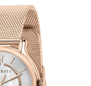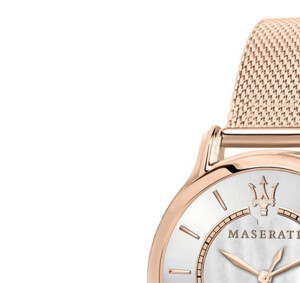Zegarek damski Maserati model R8853118506 uszlachetnia styl każdej kobiety dzięki swojemu ekskluzywnemu wyglądowi i detalom podkreślającym elegancję marki Maserati. Okrągła koperta o średnicy 34mm, wykonana z najwyższej jakości stali szlachetnej i pokryta w technologii PVD/IP złotem różowym, nadaje zegarkowi niepowtarzalny charakter. Tarcza w masie perłowej z jasnym tłem wyraźnie kontrastuje z elegancko połyskującą bransoletą, tworząc zegarek idealny dla kobiet ceniących modę i jakość. Styl Fashion, którym emanuje ten model, doskonale komponuje się zarówno z codziennym, jak i wieczorowym strojem, sprawiając, że każdy moment staje się wyjątkowy.
