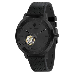 Zegarek męski Maserati o modelu R8821134001 emanuje luksusem i prestiżem marki, połączonymi z nowoczesną koncepcją stylistyczną „Fashion”. Okrągła koperta o średnicy 44mm, wykonana z wytrzymałej stali szlachetnej z czarną powłoką PVD/IP, nadaje zegarkowi elegancki i męski wygląd. Ciemna tarcza zestawiona z subtelnym „open heart” - wglądem w mechanizm - oraz trwałym, skórzanym paskiem, podkreśla współczesny charakter zegarka. Mineralne szkło chroni przed zarysowaniami, a wodoodporność do 100m zapewnia bezpieczeństwo podczas aktywności wodnych. To wyjątkowe połączenie mody i funkcjonalności, które odzwierciedla ducha marki Maserati we współczesnym świecie mody.
