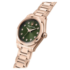 Wśród wielu dostępnych modeli zegarków na rynku, Maserati R8853152501 wyróżnia się nie tylko prestiżowym logiem, ale i unikalnym stylem. Jego okrągła, różowa koperta o średnicy 35mm i grubości 9mm, pokryta jest tarczą w odcieniu intensywnej zieleni, co dodaje elegancji i nowoczesnego charakteru. Szkło mineralne chroni zegarek przed zarysowaniami, a stal szlachetna z cyrkoniami zdobiącymi bransoletę podkreśla wyrafinowany gust użytkownika. Dodatkowe zalety, jak zapięcie motylkowe, zapewniają wygodę i bezpieczeństwo noszenia. Zegarek ten jest doskonałym wyborem dla osób ceniących sobie luksus oraz jakość, które są synonimami marki Maserati.
