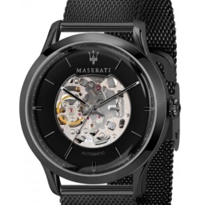 Zegarek męski Maserati, model R8823133004, to znakomity wybór dla mężczyzn ceniących sobie wyrafinowany styl i luksus. Charakterystyczna, okrągła koperta o średnicy 42mm, wykonana ze stali szlachetnej w kolorze czarnym z naniesieniem PVD/IP, nadaje zegarkowi nowoczesny i elegancki wygląd. Ciemna tarcza jest czytelna dzięki fluorescencyjnym wskazówkom i indeksom, a transparentny dekiel pozwala podziwiać mechanizm automatyczny, który jest sercem tego urządzenia. Styl Fashion podkreślony jest przez solidną bransoletę, która dodatkowo zwiększa komfort noszenia. Dodatkowo, zegarek jest wodoodporny do 50 metrów, co sprawia, że nadaje się do pływania powierzchniowego. Całość prezentuje prestiż i klasę marki Maserati, będąc nie tylko urządzeniem mierzącym czas, ale również wyróżniającym się elementem męskiej elegancji.