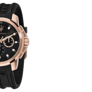 Zegarek męski Maserati model R8851123008 wyróżnia się wyjątkową estetyką, która oddaje ducha luksusowej marki Maserati. Solidna strefa wykonania ze stali szlachetnej oraz innowacyjne połączenie kolorów czarnego i różowego złota nadają temu modelowi niezwykły charakter. Okrągła koperta o średnicy 44 mm, pokryta ciemną tarczą i protekcyjnym szkłem mineralnym, jest symbolem elegancji i wytrzymałości. Modny, sportowy design uzupełnia pasek z gumy kauczukowej, co gwarantuje komfort noszenia. Zegarek przyciąga wzrok miłośników mody, będąc jednocześnie wyrazem prestiżu i nowoczesności, które są znakiem rozpoznawczym marki Maserati.