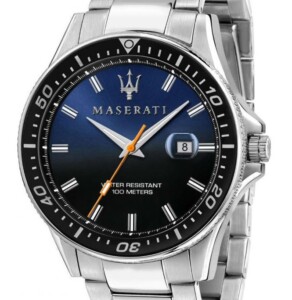 Elegancki zegarek męski Maserati o modelu R8853140001 to kwintesencja luksusu i precyzji, charakterystyczna dla marki Maserati, która jest synonimem włoskiej elegancji i stylu. Ten zegarek z kopertą o średnicy 44mm, wykonaną ze stali szlachetnej, zachwyca intensywnym połączeniem kolorów: czarnym, niebieskim oraz srebrnym. Wyrazista, ciemna tarcza zestawiona z fluorescencyjnymi wskazówkami i indeksami nie tylko ułatwia odczytanie godziny, ale także dodaje urządzeniu nowoczesnego charakteru. Model ten, zasilany baterią kwarcową, posiada mineralne szkło zapewniające odpowiednią trwałość oraz wodoodporność do 100 metrów, co sprawia, że jest idealnym wyborem dla aktywnych mężczyzn ceniących sobie wyrafinowany styl "Fashion".