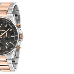 Zegarek męski Maserati R8873640021 to kwintesencja elegancji i nowoczesności, którą podkreślają elementy w kolorze różowego złota oraz luksusowego czarnego i srebrnego odcienia. Okrągła koperta o średnicy 44mm, wykonana ze stali szlachetnej oraz szkło mineralne chronią jego mechanizm automatyczny, napędzany ruchem nadgarstka. Styl „Fashion” tego modelu odzwierciedla prestiż marki Maserati, która jest synonimem wysokiej jakości i niezawodności. Bicolorowa estetyka, połączona z ciemną tarczą i funkcjonalnościami, takimi jak chronograf, datownik oraz fluorescencyjne wskazówki, zachwyci każdego miłośnika zegarków poszukującego wyrafinowanego akcesorium, które podkreśli jego charakter i styl.