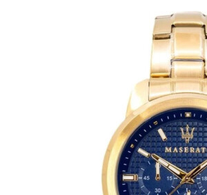 Elegancja i dynamika to cechy kluczowe męskiego zegarka Maserati o modelu R8873621021, który idealnie odzwierciedla prestiż marki. Jego okrągła koperta o średnicy 44mm wykonana ze stali szlachetnej, pozłacana metodą PVD/IP w odcieniach żółtego złota, prezentuje wyrafinowany styl Fashion. Tarcza w ciemnym odcieniu harmonijnie komponuje się z elegancką, niebiesko-żółtozłotą bransoletą, tworząc wzór, który przyciąga uwagę. Szkło mineralne i wodoodporność do 50m umożliwiają utrzymanie trwałości i funkcjonalności bez względu na warunki, dodając zegarkowi uniwersalnego charakteru dla nowoczesnych mężczyzn ceniących luksus i styl.