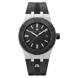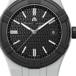 Nowoczesny i elegancki męski zegarek Maurice Lacroix, model AI2008-20YZ0-200-0, idealnie łączy sportowy zywiół z elegancją. Wykonany na okrągłej, czarnej kopercie o średnicy 40mm, posiada ciemną tarczę, która podkreślona jest srebrnymi akcentami. Zegarek wyposażony jest w kwarcowy mechanizm zasilany baterią, zapewniający niezawodność i precyzję działania. Fluorescencyjne wskazówki oraz indeksy gwarantują czytelność o każdej porze dnia i nocy, a wodoodporność do 100 metrów umożliwia korzystanie z niego podczas różnych aktywności wodnych. Szafirowe szkło odpierające zarysowania oraz elastyczny, gumowy pasek zapewniają komfort noszenia oraz trwałość. Sportowo-elegancki styl tego modelu Maurice Lacroix spełnia oczekiwania nowoczesnych mężczyzn ceniących sobie funkcjonalność i wyrafinowany design.