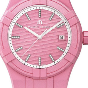 Zegarek męski Maurice Lacroix, model AI2008-EEEE1-3A0-0, to doskonały wybór dla mężczyzny ceniącego połączenie sportowej funkcjonalności z elegancją. Wyróżnia się jasną tarczą z fluorescencyjnymi wskazówkami, co ułatwia odczytanie czasu nawet w ciemności. Obudowa o średnicy 40 mm wykonana z trwałego tworzywa sztucznego wzbogacona jest o diamentowe zdobienia, dodając tym samym luksusowego charakteru. Sportowy pasek gumowy idealnie komponuje się z różowymi elementami tarczy, tworząc wyrafinowany, a zarazem dynamiczny wygląd. Szafirowe szkło gwarantuje odporność na zarysowania, co w połączeniu z wodoodpornością do 100 m sprawia, że zegarek jest zarówno praktyczny, jak i atrakcyjny wizualnie. Swoim wyglądem oraz światowym prestiżem marki Maurice Lacroix, ten model z pewnością podkreśli wyjątkowy styl i osobowość każdego mężczyzny.