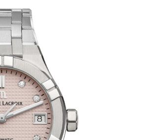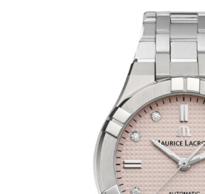 Zegarek damski Maurice Lacroix o numerze modelu AI6006-SS00F-550-E to kwintesencja elegancji i luksusu, charakterystyczna dla prestiżowej marki. Jego okrągła koperta o średnicy 35 mm wykonana jest z najwyższej jakości stali szlachetnej, ozdobionej diamentami, które nadają zegarkowi wyjątkowy blask. Różowo-srebrna tarcza zdobi zegarek, sprawiając, że jest on nie tylko funkcjonalny, ale również wyrafinowany dodatek do każdej stylizacji. Szafirowe szkło odporne na zarysowania oraz zapięcie motylkowe podkreślają wysoki standard wykończenia i dbałość o detale, które są znakiem rozpoznawczym Maurice Lacroix.