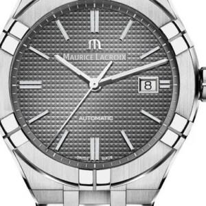 Zegarek męski Maurice Lacroix AI6008-SS002-230-1 to kwintesencja połączenia elegancji i dynamiki, charakterystyczna dla prestiżowej marki Maurice Lacroix. Sportowo-elegancki styl tego modelu podkreślony jest przez okrągłą, stalową kopertę o średnicy 42 mm, która harmonijnie komponuje się z ciemną tarczą i srebrnoszarym odcieniem bransolety. Wysoka jakość wykonania jest zaznaczona przez szkło szafirowe, odporne na zarysowania, oraz mechanizm automatyczny, zapewniający precyzyjne odmierzanie czasu. Elementy takie jak fluorescencyjne wskazówki, datownik czy zakręcana koronka zwiększają funkcjonalność zegarka, a zapięcie motylkowe gwarantuje komfort noszenia. Maurice Lacroix z modelu AI6008-SS002-230-1 kreuje idealny wybór dla mężczyzny ceniącego luksus połączony z aktywnym trybem życia.