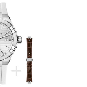 Maurice Lacroix AIKON AI6008-SS00B-130-G - zegarek męski w sportowym wydaniu szwajcarskiego producenta. Czasomierz wyprodukowany został z wysokiej jakości stali szlachetnej, która jest odporna na korozję i w pełni bezpieczna dla skóry. Tradycyjna okrągła koperta w srebrnym kolorze to klasyka wśród zegarków ręcznych. Analogowa tarcza obudowana została szkiełkiem szafirowym wysoce odpornym na pęknięcia i zarysowania.