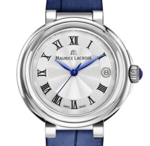 Maurice Lacroix Fiaba FA1007-SS001-110-1 - przedstawiamy zegarek damski marki Maurice Lacroix, którego wykonanie zewnętrzne, jak i wewnętrzne, jest niezwykle przemyślane i dopracowane. Niesamowite połączenie niebieskiej bransolety oraz niebieskich wskazówek, wraz z jasną tarczą, daje urządzeniu szyku i elegancji.Wodoszczelność tego produktu scharakteryzowano w klasie 30m. Daje to odporność na lekkie zachlapania wodą (mycie rąk, mycie naczyń, mycie samochodu). Model Maurice Lacroix Fiaba FA1007-SS001-110-1 odgórnie nałożoną na siebie ma dwuletnią gwarancję, ważną od dnia zakupu. Stal szlachetna została materiałem wykonania koperty zegarka. Jego pasek natomiast jest skórzany, co dodaje nutkę prestiżu i elegancji całości urządzenia. Tarczę producenci pokryli z największym zaangażowaniem za pomocą szkła szafirowego, które jest wielce odporne na zarysowania i stłuczenia. Urządzenie posiada oryginalnie wbudowaną funkcję datownika, a także powłoki antyrefleksyjnej, która usuwa refleksy z powierzchni tarczy.