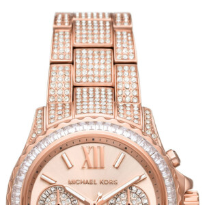Elegancki zegarek damski Michael Kors, model MK7235, jest ucieleśnieniem ponadczasowego stylu i luksusowej estetyki, które są synonimami marki. Wykonany z polerowanej stali szlachetnej i pozłacany w odcieniu różowego złota metodą PVD/IP, ten zegarek przyciąga uwagę swoją błyszczącą okrągłą kopertą o średnicy 36mm, zdobioną lśniącymi cyrkoniami. Jego ciemna tarcza harmonijnie komponuje się z elegancką bransoletą, nadając całości wyrafinowany charakter. Szkiełko mineralne chroni przed zarysowaniami, podkreślając trwałość i praktyczność, co jest zgodne ze stylem fashion, dla którego marka Michael Kors jest znana na całym świecie.