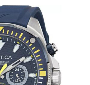 Zegarek Nautica model NAPBSF502 to doskonała propozycja dla miłośników aktywnego stylu życia ceniących zarówno funkcjonalność, jak i estetykę. Sportowy charakter tego modelu zostaje dodatkowo podkreślony przez śmiałą, niebieską tarczę oraz elegancki, stalowy kolor koperty. Trwałość zapewnia szkło mineralne oraz wodoodporność do 100 metrów, co pozwala na bezpieczne nurkowanie bez aqualungu. Ponadto, zegarek wyposażony jest w wygodny, skórzany pasek, który dodaje klasy każdemu strojowi. Niezawodność mechanizmu kwarcowego, połączona z praktycznymi funkcjami takimi jak chronograf, datownik czy czas 24-godzinny, sprawiają, że model NAPBSF502 jest znakomitą inwestycją dla każdego sportowca.