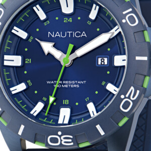 Nautica NAPNRF405 to zegarek, który usatysfakcjonuje miłośników klasyki połączonej z nowoczesnymi akcentami. Niebieska tarcza oraz równie elegancko dobrany kolor paska i koperty, uzupełnione o wytrzymały, skórzany pasek, podkreślają sportowy, ale jednocześnie szlachetny charakter tego modelu. Solidna, okrągła koperta o średnicy 44 mm i grubości 14 mm zapewnia wygodę użytkowania na co dzień, a także podczas aktywności związanych z wodą, dzięki wodoszczelności do 100 metrów. Dodatkowe funkcje jak datownik i zakręcany dekiel wzbogacają wygodę użytkowania, a mineralne szkło chroni zegarek przed zarysowaniami, zapewniając trwałość na lata – wszystko to pod sygnetem renomowanej marki Nautica, gwarantującej jakość i elegancję.