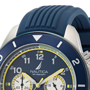 Zegarek męski Nautica, model NAPNOS402, to kwintesencja stylu Fashion, który łączy elegancję z nowoczesnością. Okrągła, duża koperta o średnicy 48mm wykonana jest z wysokiej jakości stali szlachetnej, co podkreśla jego wytrzymałość i klasę. Ciemna tarcza w połączeniu z niebieskim, gumowym paskiem dodaje urządzeniu sportowego charakteru, zachowując jednocześnie elegancki wygląd. Srebrne elementy, fluorescencyjne wskazówki oraz szkło mineralne sprawiają, że zegarek jest czytelny w każdych warunkach. Model ten, wzbogacony o funkcje chronografu, datownika i wodoodporność do 100m, doskonale odzwierciedla ducha przygodniczego i ponadczasowego designu, jaki promuje marka Nautica.