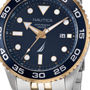 Elegancki i wszechstronny zegarek męski Nautica model NAPPBF140 łączy w sobie praktyczność i styl fashion, zaznaczając obecność i wartość marki Nautica. Okrągła stalowa koperta o średnicy 43mm, potęguje jego męski charakter, podkreślany przez ciemną tarczę z fluoryzującymi elementami oraz bicolorową bransoletę w odcieniach granatowym, różowego złota oraz srebrnym. Mineralne szkło zapewnia odporność na zarysowania, a wodoodporność do 100 metrów gwarantuje bezpieczeństwo użytkowania nawet podczas nurkowania bez aqualungu. Model ten uosabia sportową elegancję i jest doskonałym wyborem dla mężczyzn ceniących aktywny, ale i modny styl życia.